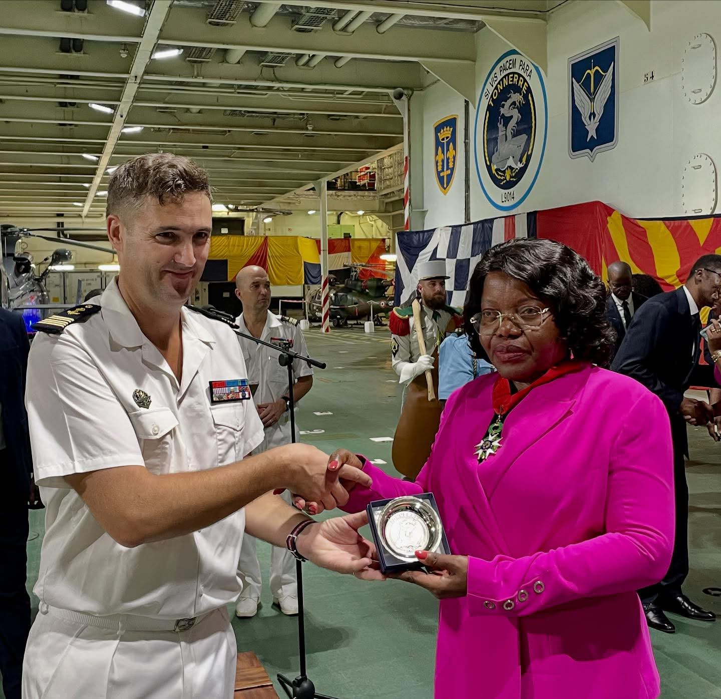 Une cérémonie officielle a été organisée à bord du navire en présence de la présidente du Sénat de la Transition, de l’ambassadeur de France au Gabon, de membres du gouvernement et de chefs de missions diplomatiques. L’événement a symbolisé l’importance croissante du Gabon sur la scène sécuritaire régionale, fruit de la politique de coopération ouverte et responsable prônée par le Président Oligui Nguema.