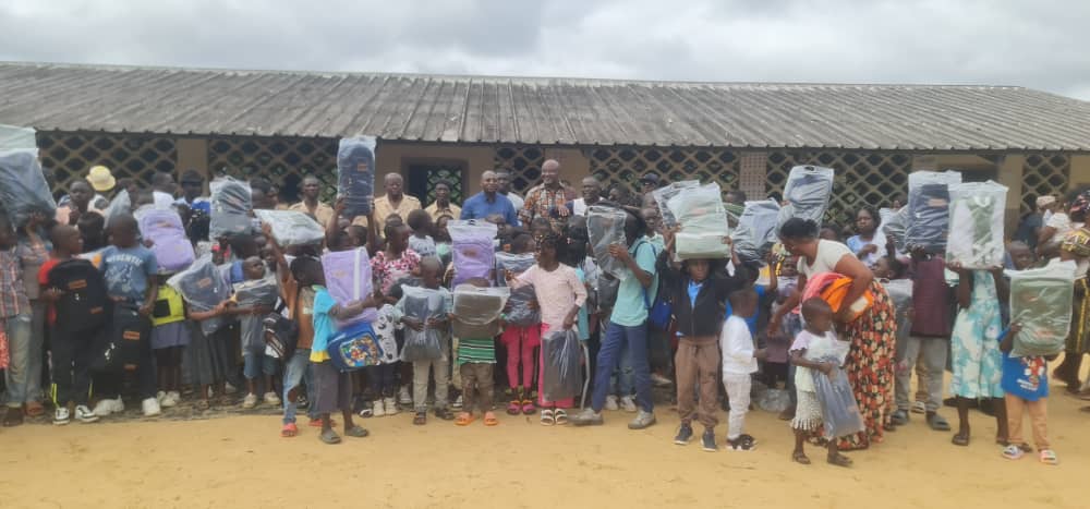 Remise de kits scolaires à Bayi-Brikolo (ABOUMI) : le couple présidentiel réaffirme son attachement à l’éducation