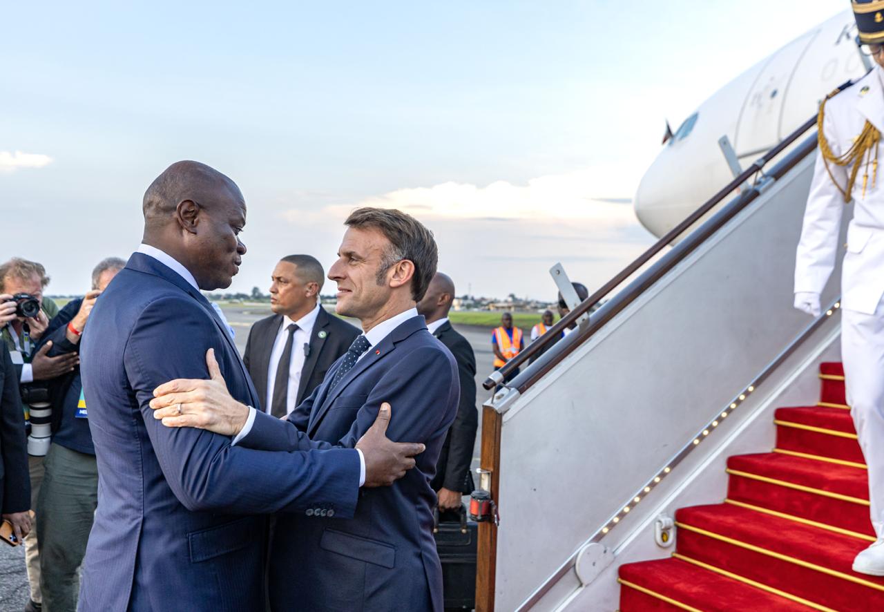 Le président français Emmanuel Macron a atterri, ce dimanche 23 novembre 2025, peu après 18 heures, à l’aéroport international Léon-Mba de Libreville, marquant le début d’une visite d’État de deux jours particulièrement scrutée. Reçu par son homologue gabonais, le président Brice Clotaire Oligui Nguema, le chef de l’État français a été accueilli avec les honneurs militaires, conformément au protocole, dans une atmosphère solennelle qui souligne l’importance de ce déplacement.