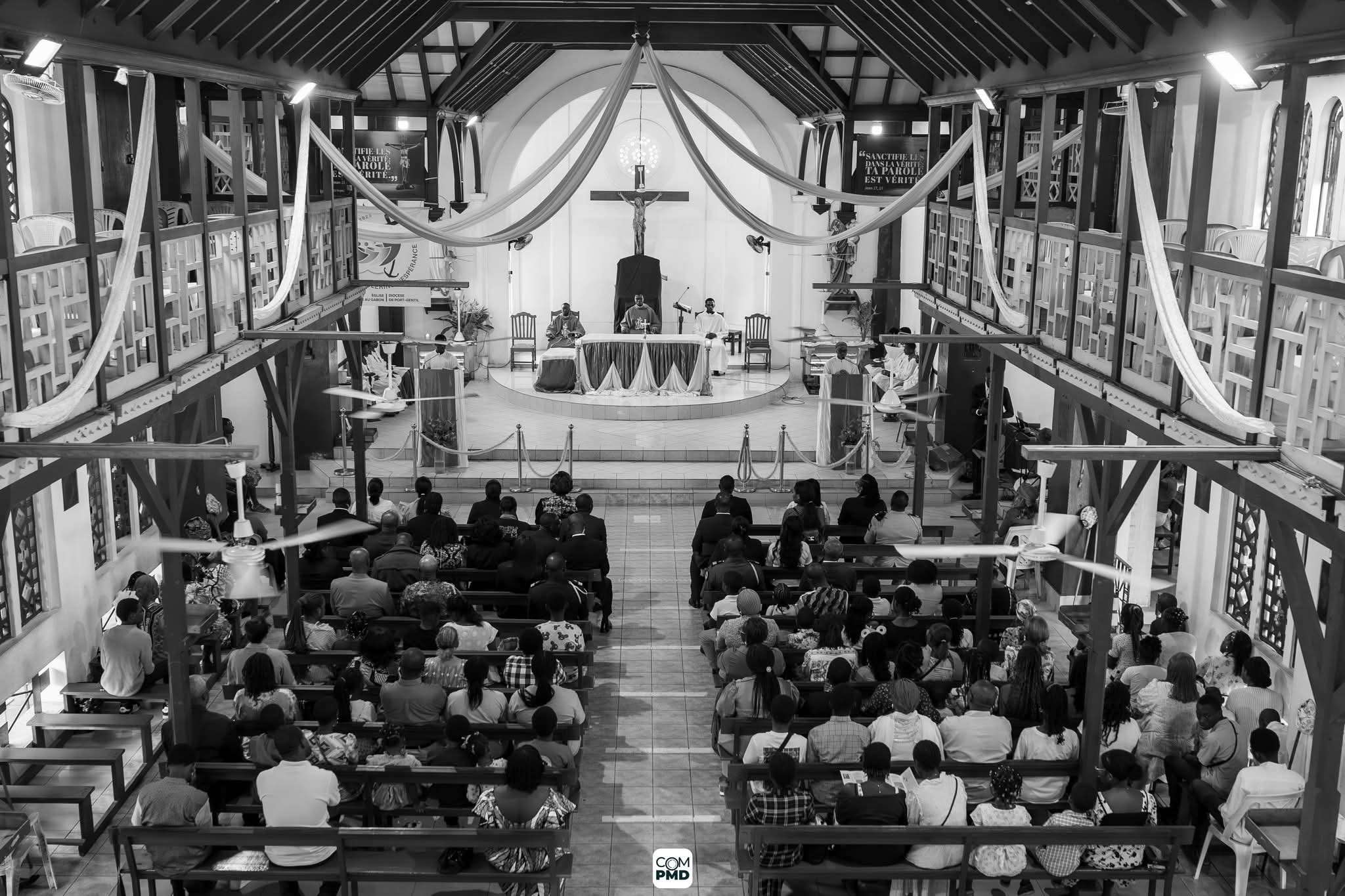 Le séjour de la Première Dame a débuté par un moment de haute portée symbolique : un culte de célébration à la Cathédrale Saint Louis, en présence de nombreuses fidèles venues des quatre coins de la province. Dans cette atmosphère de recueillement, Madame Zita Oligui Nguema a rappelé que la force des mères repose aussi sur des valeurs spirituelles solides, forgées dans la foi, le sacrifice et la dignité.